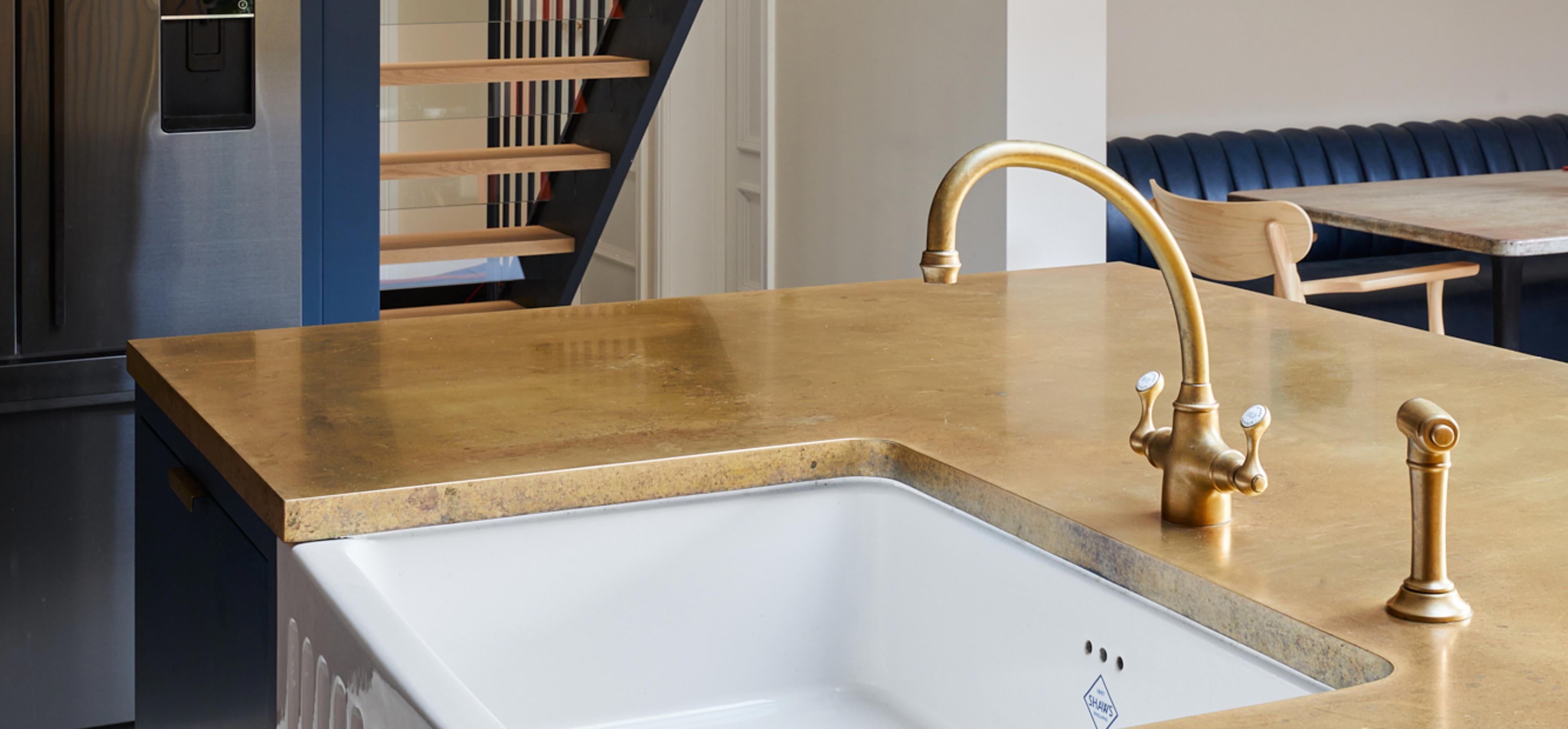 Die vollkommene, traditionelle Küchenarmatur. Verfügbar als Einhandmischer oder mit zwei Einzelhähnen, oberen Quergriffen oder -hebeln, bringt der Ionian zeitlose Eleganz in jede Küche. Besonders beliebt in unserem unlackierten Messingfinish – mit der Zeit entwickelt jedes Stück seine eigene schöne und einmalige Patina.