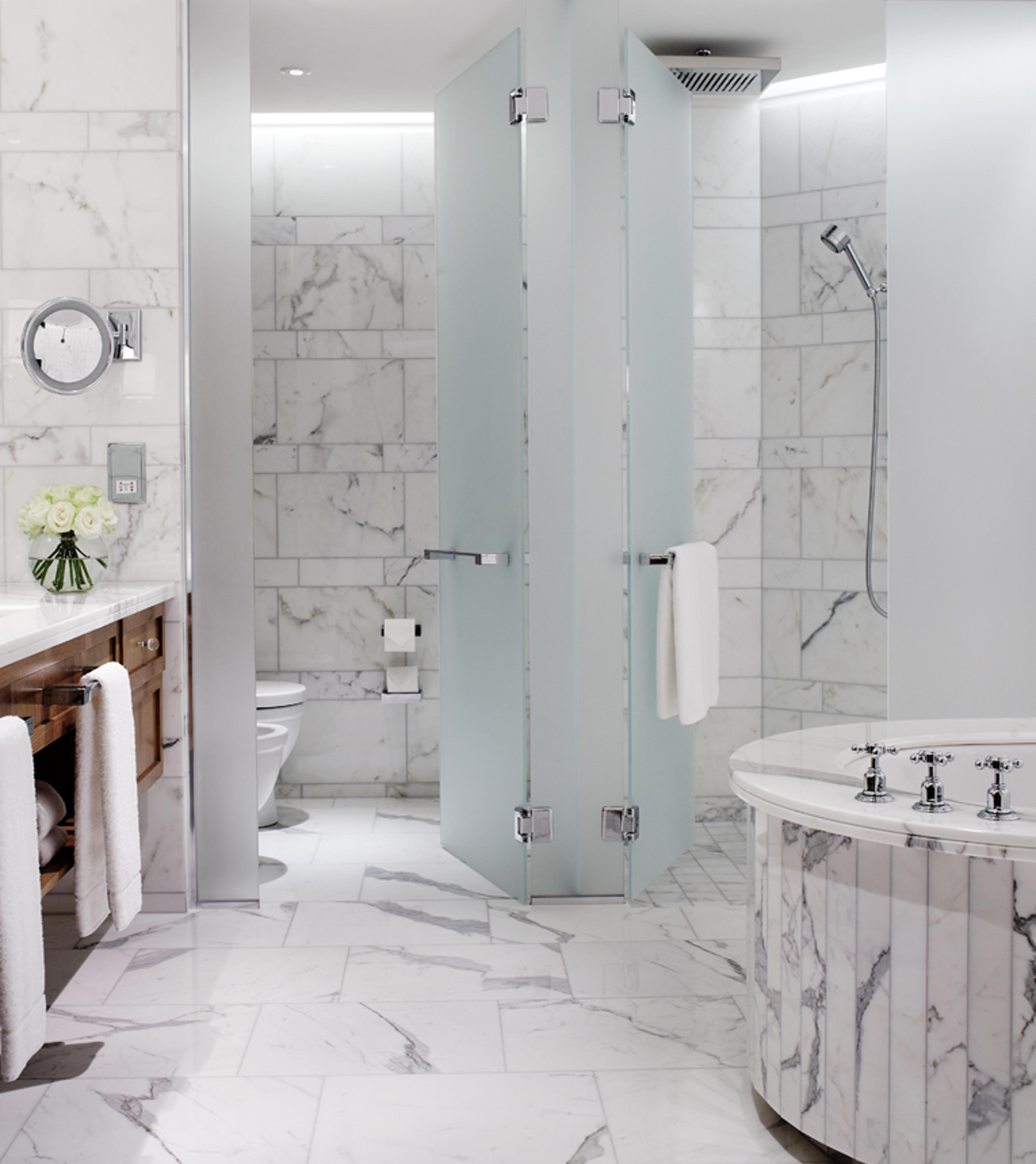 Designer Martin Goddard selected Perrin & Rowe as partner for all 294 guest rooms and suites. On major hotel and residential projects, our specialist team can work with a designer to develop unique products to suit a particular design style. In this case, a bespoke version of our Traditional brassware was produced complements the lavish Italian marble en-suites.