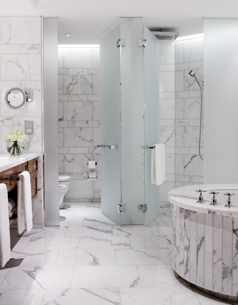 Designer Martin Goddard selected Perrin & Rowe as partner for all 294 guest rooms and suites. On major hotel and residential projects, our specialist team can work with a designer to develop unique products to suit a particular design style. In this case, a bespoke version of our Traditional brassware was produced complements the lavish Italian marble en-suites.