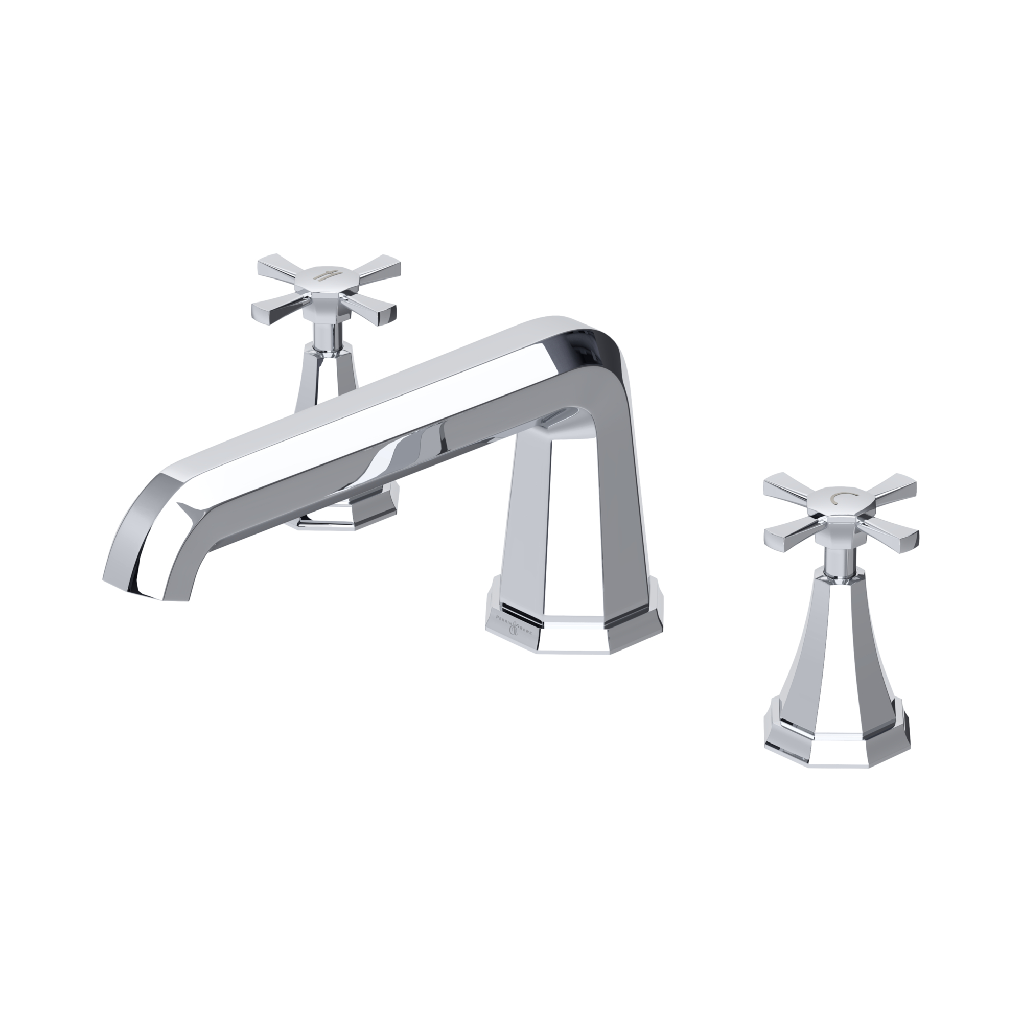 The Perrin & Rowe Deco collection draws inspiration from the Art Deco era of interior design. Opulent with geometric patterns, it's a unique collection that will create a hotel style bathroom in your own home. This four hole deck-mounted bath filler set is a sleek option, and completely reminiscent of the era that inspires its design. This deck mounted bath filler is designed for installation on tiles or shelving next to the bath, or on the flat rim of a roll-top bath. The handshower attachment is made entirely of brass, and can be controlled by diverter on the bath filler spout. Available with crosstop handles or lever handles to coordinate with the rest of your bathroom scheme.