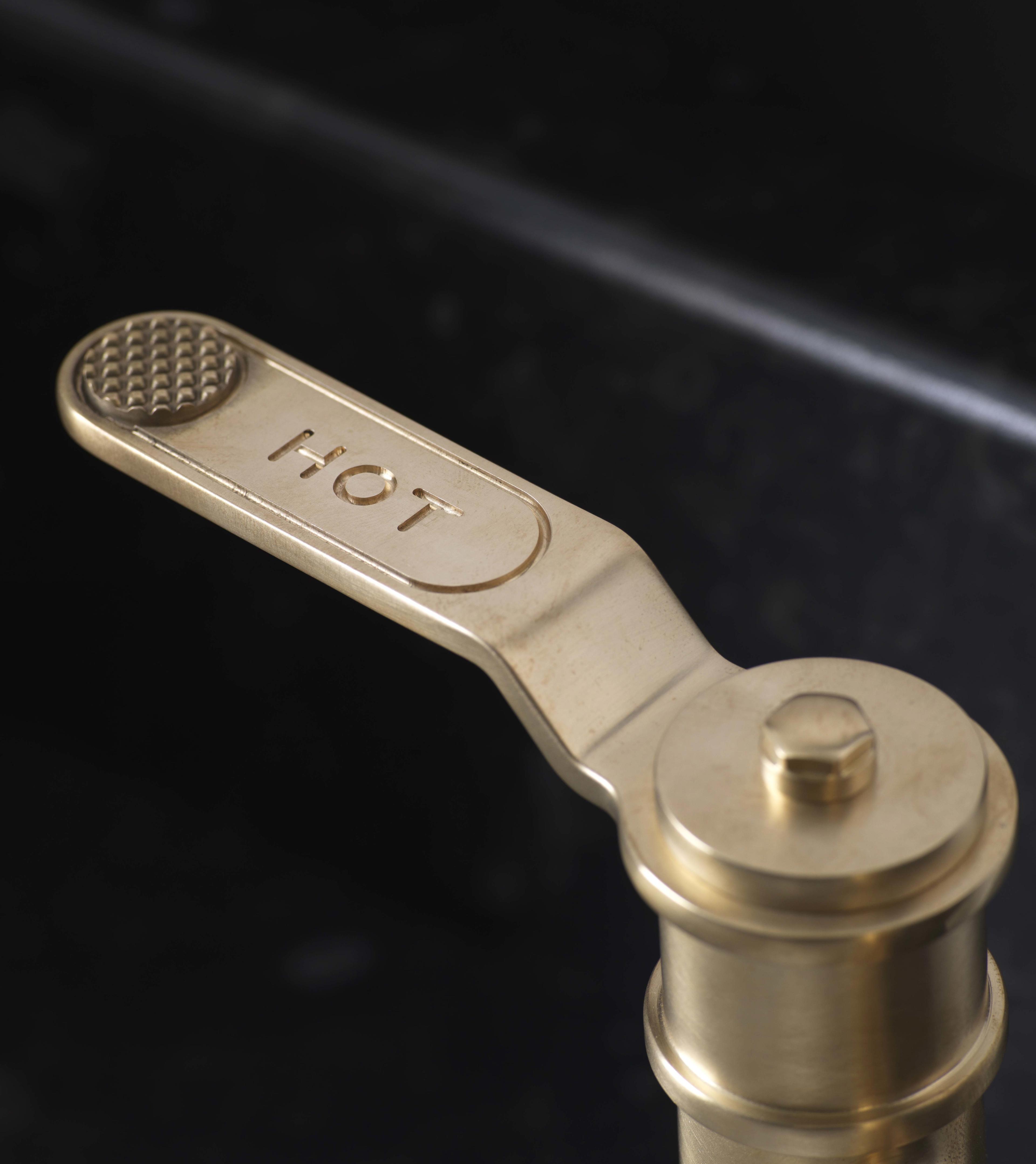 Our Gold electroplated products are made with real 24 carat gold. Gold is a soft finish which should be treated like a piece of fine jewellery, and gently cleaned with a damp, lint free cloth after use. This beautiful finish can look different in the light; sometimes bright and warm, often soft and elegant. Traditionally chosen for more classic styles of brassware, we are now seeing it in more contemporary designs where it looks beautiful. A real luxury touch for any brassware in the kitchen or bathroom.