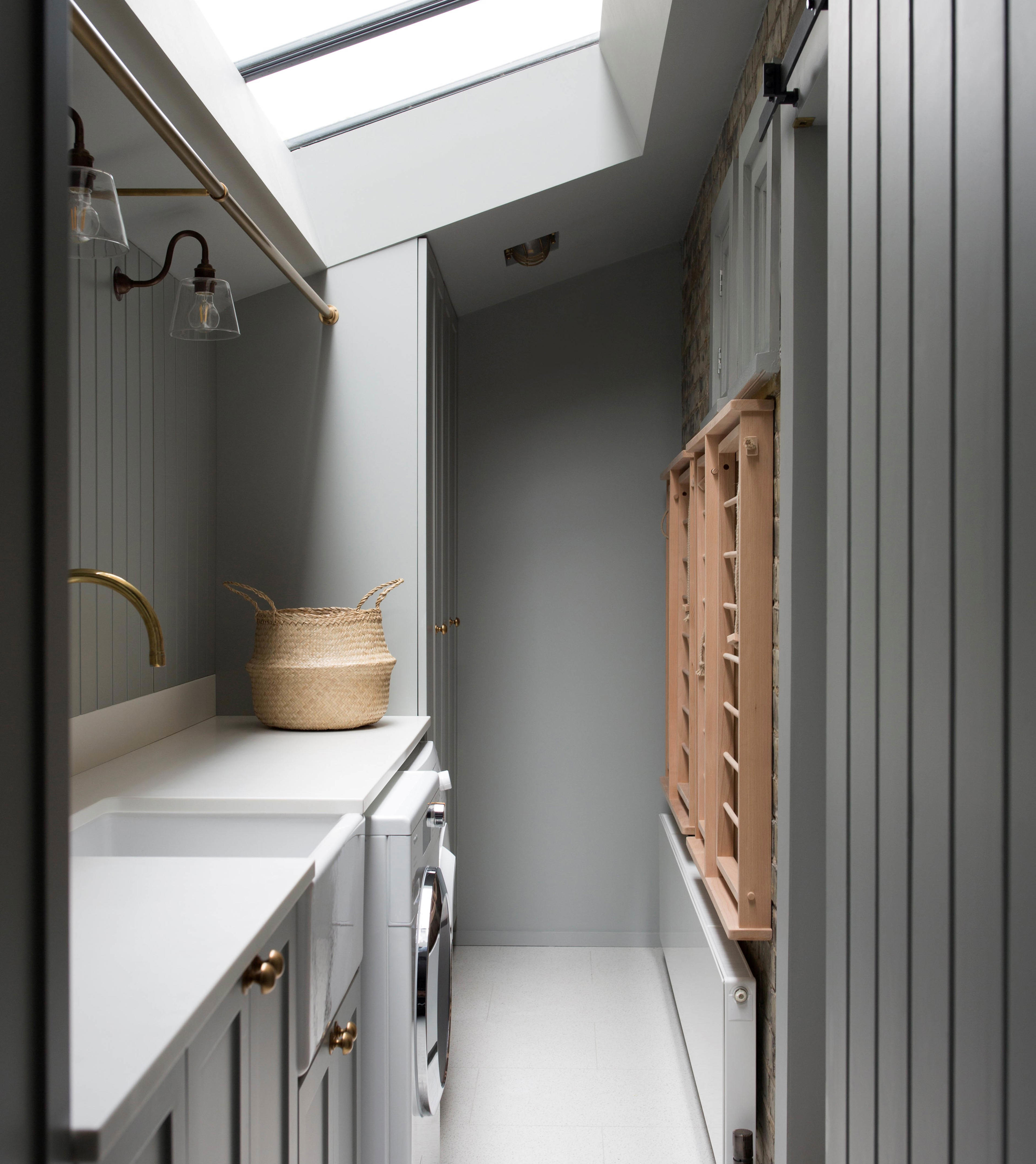 Utility rooms are often considered fairly dark spaces, located in the middle of the home with no natural light. The utility room in this design by interior designer Laura Binns is narrow, yet a skylight floods the space with natural light. Clever storage solutions means every inch of space has been utilised, proving that a utility room doesn't have have to be huge to be beautiful. A Shaws of Darwen Butler sink is the perfect hardworking utility room sink.