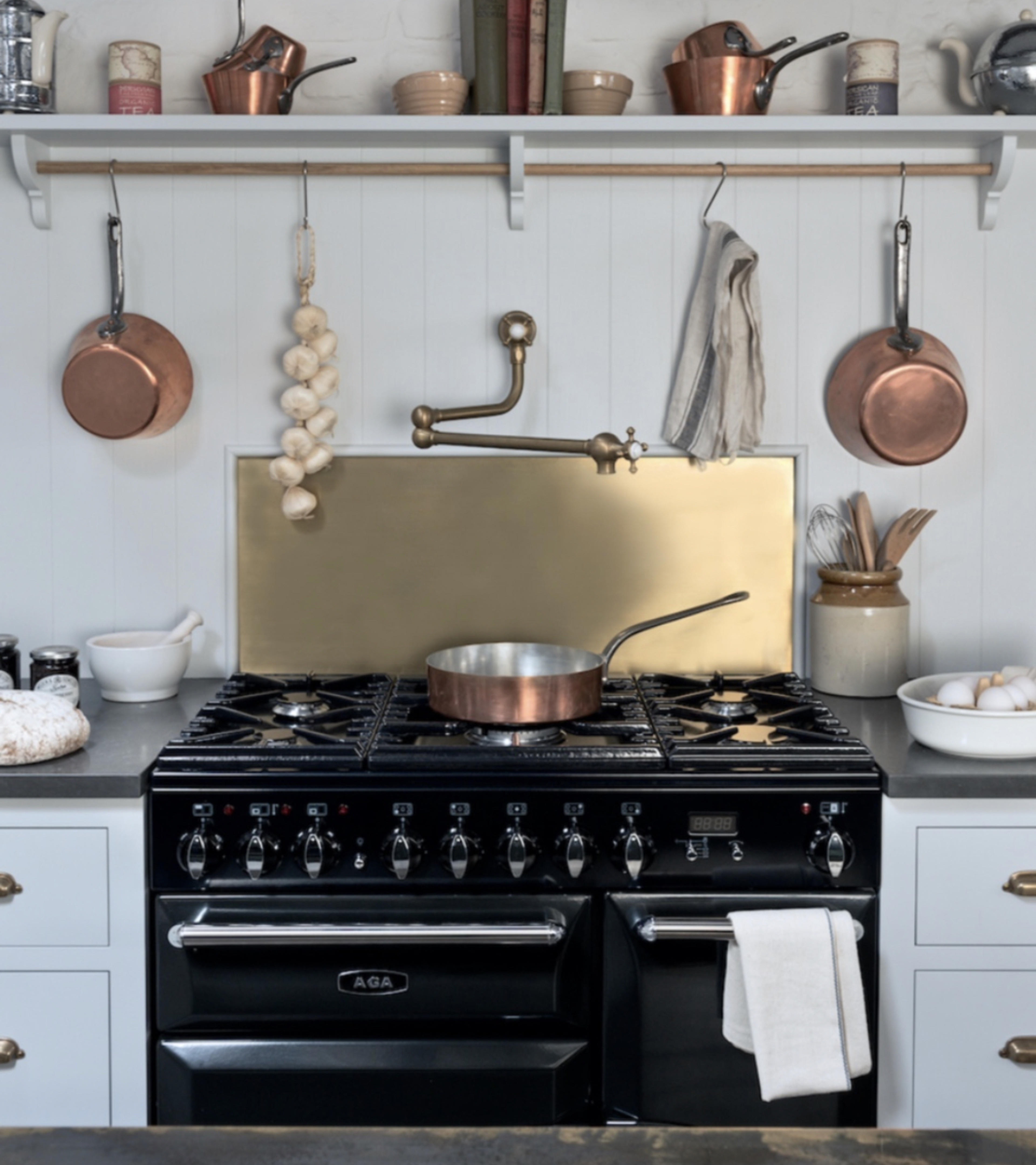 Pot fillers are great for safety. Families with young children and multi-generational homes will appreciate the fact that the tap prevents you from having to walk across the kitchen carrying a heavy pot from the sink to hob. There’s less chance of any spillage and little ones won’t be at risk of getting under your feet. Katie and Stuart have opted for the Traditional pot filler in aged brass above their cooker as well as an aged brass Phoenician mixer, rinse and soap dispenser on the central island. Having all fixtures in the same finish brings the kitchen together beautifully.