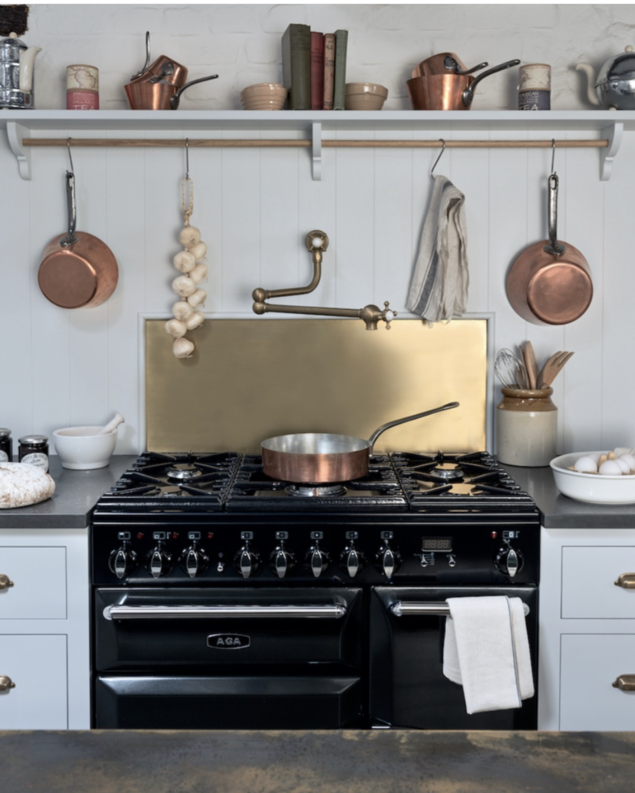 Pot fillers are great for safety. Families with young children and multi-generational homes will appreciate the fact that the tap prevents you from having to walk across the kitchen carrying a heavy pot from the sink to hob. There’s less chance of any spillage and little ones won’t be at risk of getting under your feet. Katie and Stuart have opted for the Traditional pot filler in aged brass above their cooker as well as an aged brass Phoenician mixer, rinse and soap dispenser on the central island. Having all fixtures in the same finish brings the kitchen together beautifully.