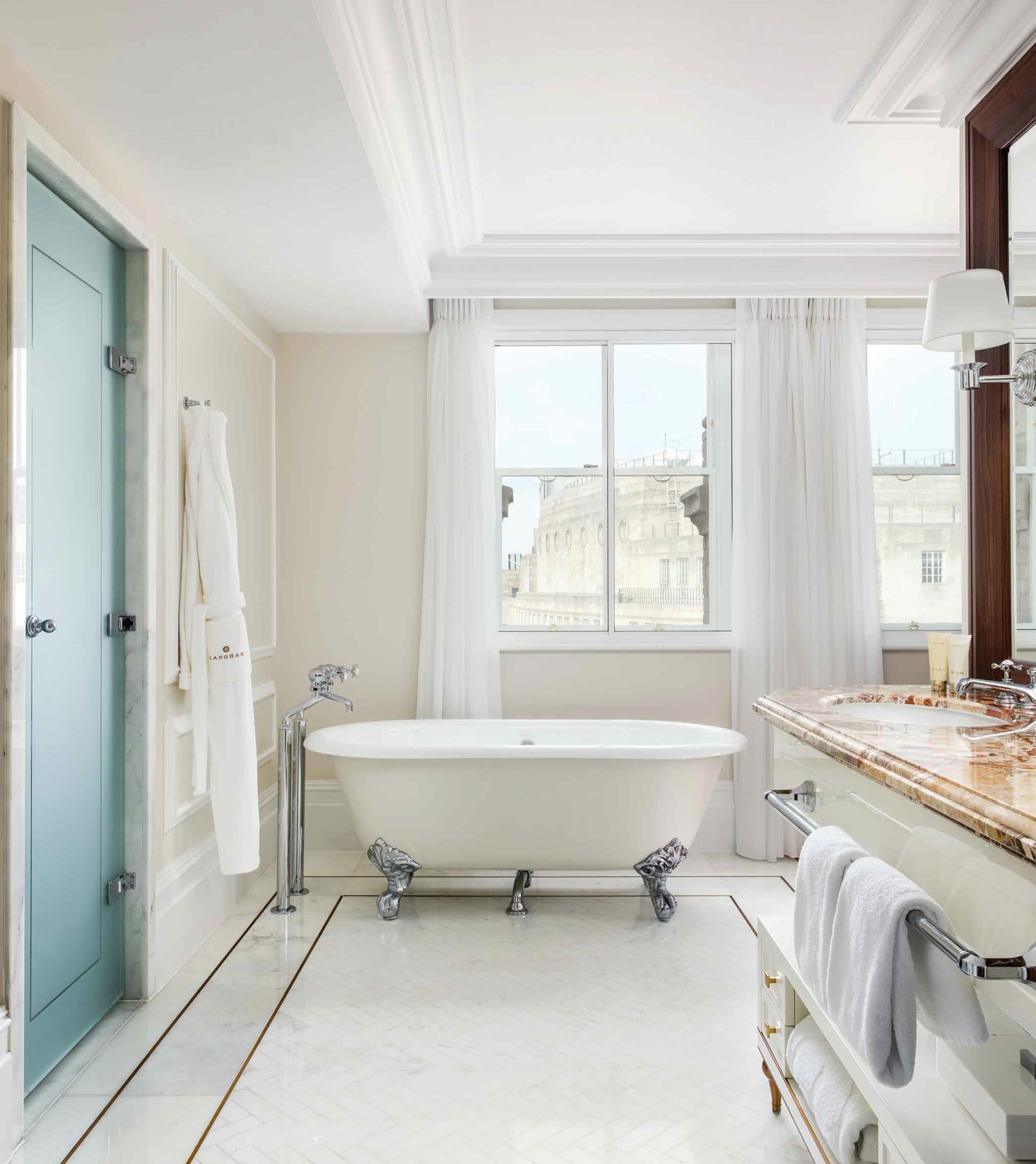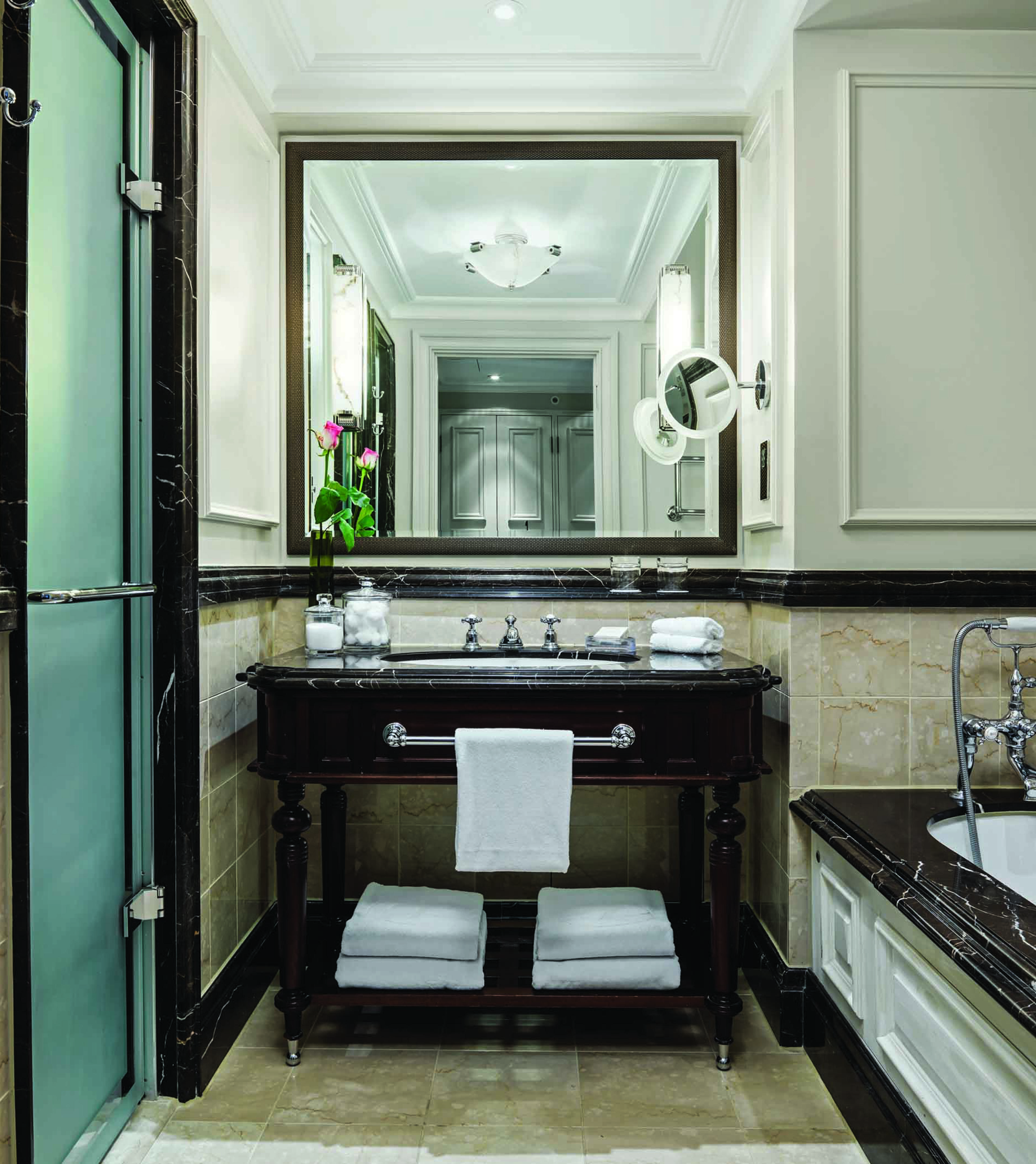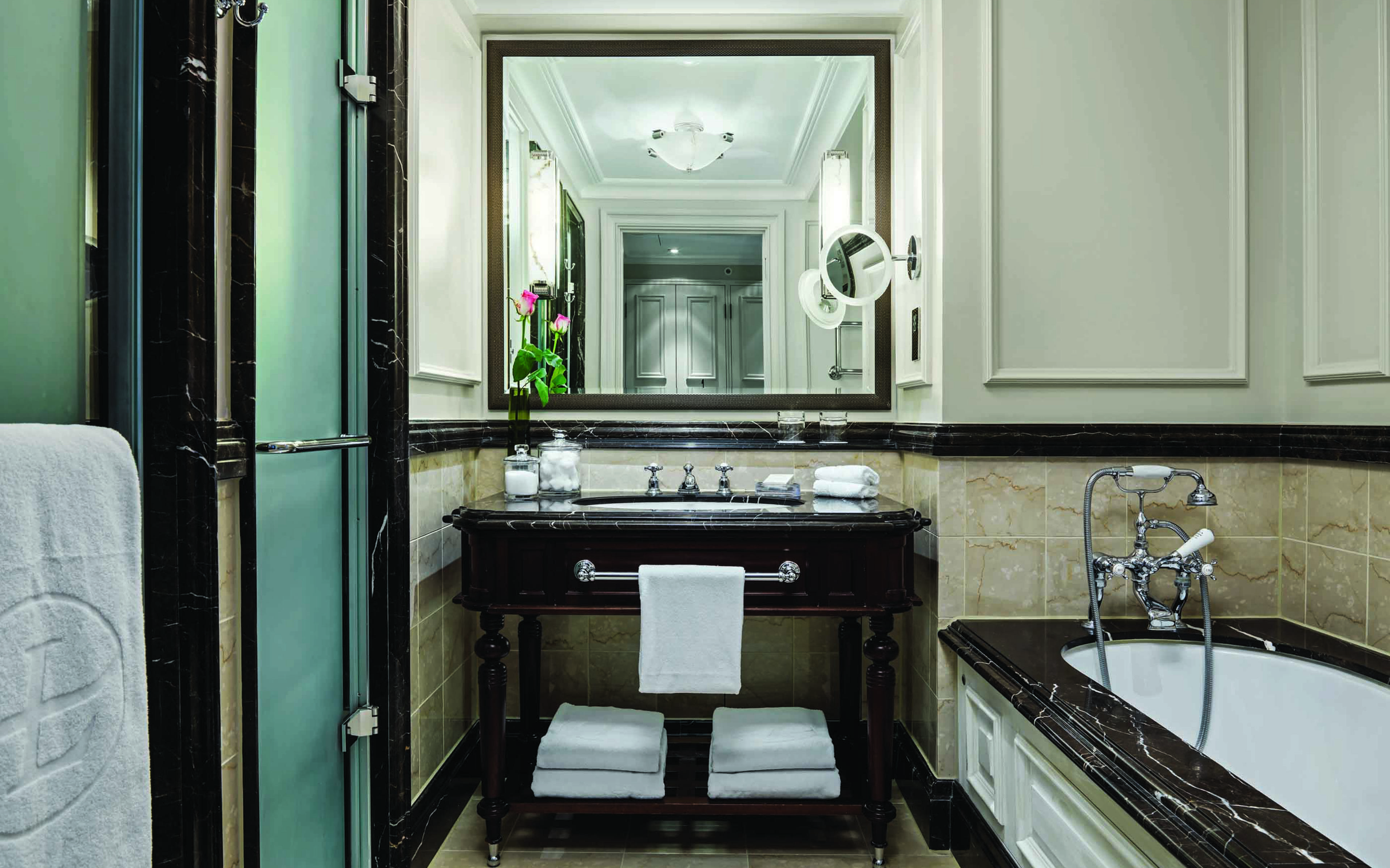 The hotel's design team specified Perrin & Rowe’s Traditional range throughout the rooms and suites. British-made, hand-polished and the epitome of Victorian elegance, Perrin & Rowe’s Traditional fittings perfectly complement the Langham’s bespoke furniture and black Carrera marble.