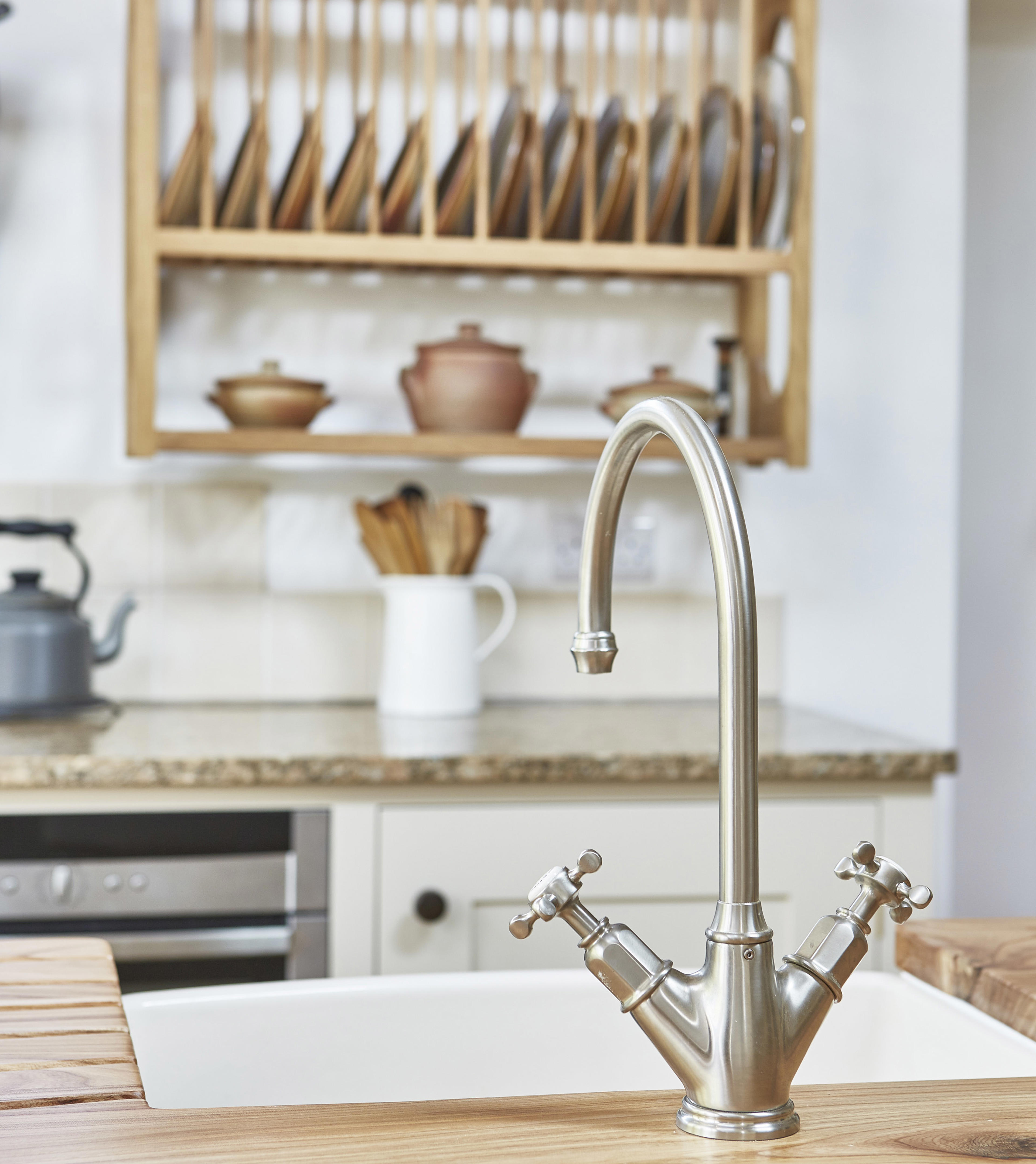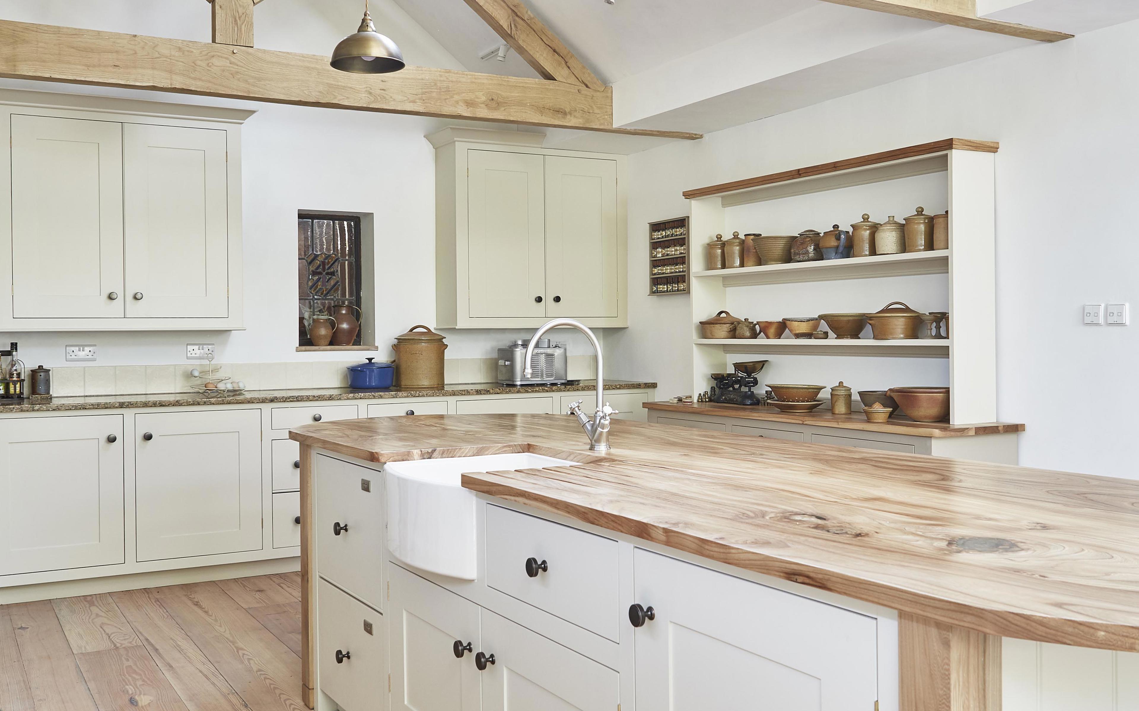 The owners wanted to retain the existing sink – an elegant bow-fronted Waterside 600, which they had become very fond of over the years. Shaws sinks are handmade using heavy duty fireclay, and are incredibly durable. The Waterside 600 sink was refurbished to remove any patina earned by its many years of hard work.
