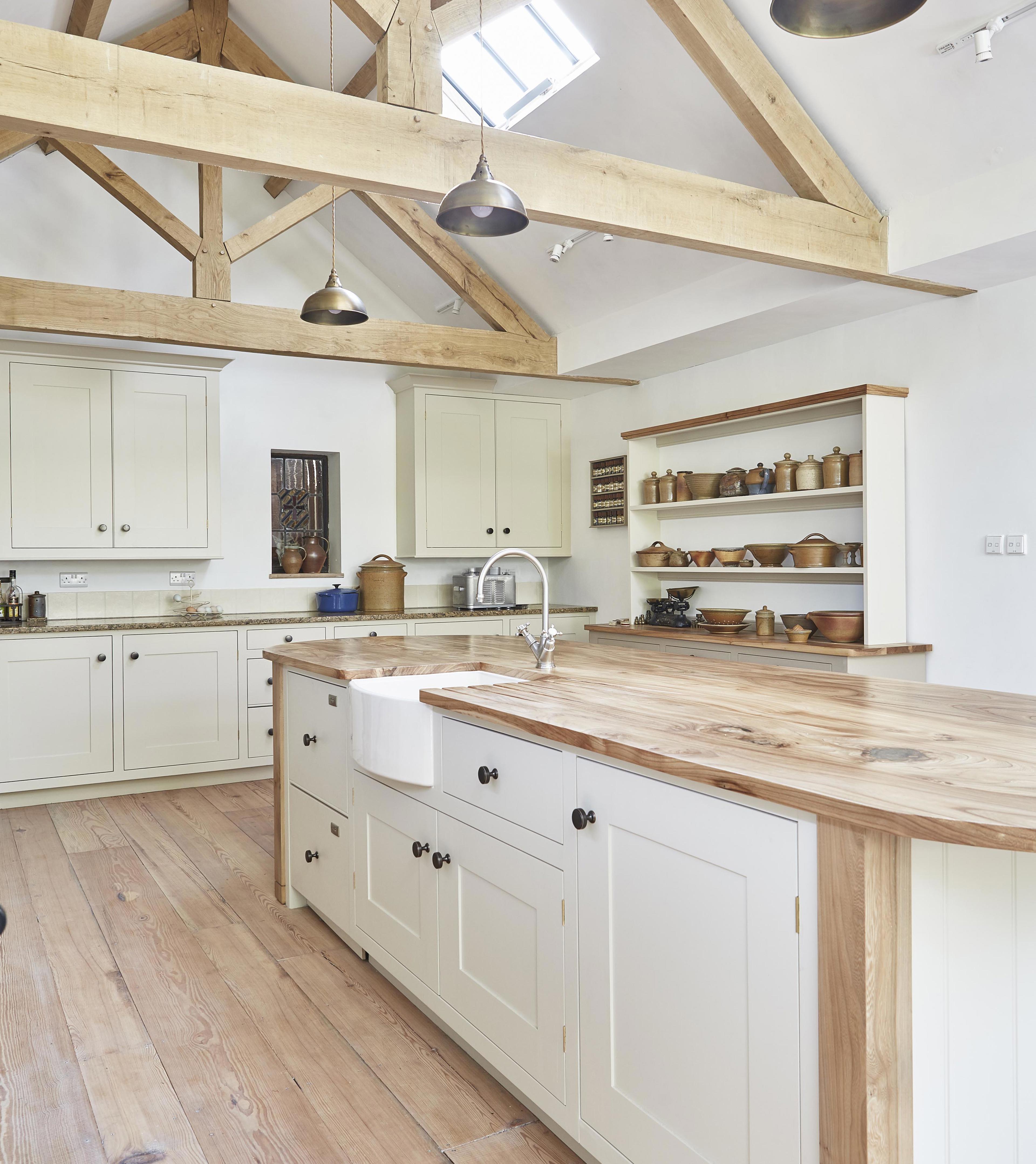 A holiday conversation led Barbara and Trevor Paul to a bold decision that their listed, 16th Century cottage kitchen should be reduced to rubble; in its place they had a vision for a much larger kitchen space that could link to an existing barn on the property. Having discussed their ideas with both their architect and with the interior design team at Barnes of Ashburton, they decided to refurbish and re-use as much of the existing sink, brassware and cabinetry as possible to form the basis of the new kitchen.