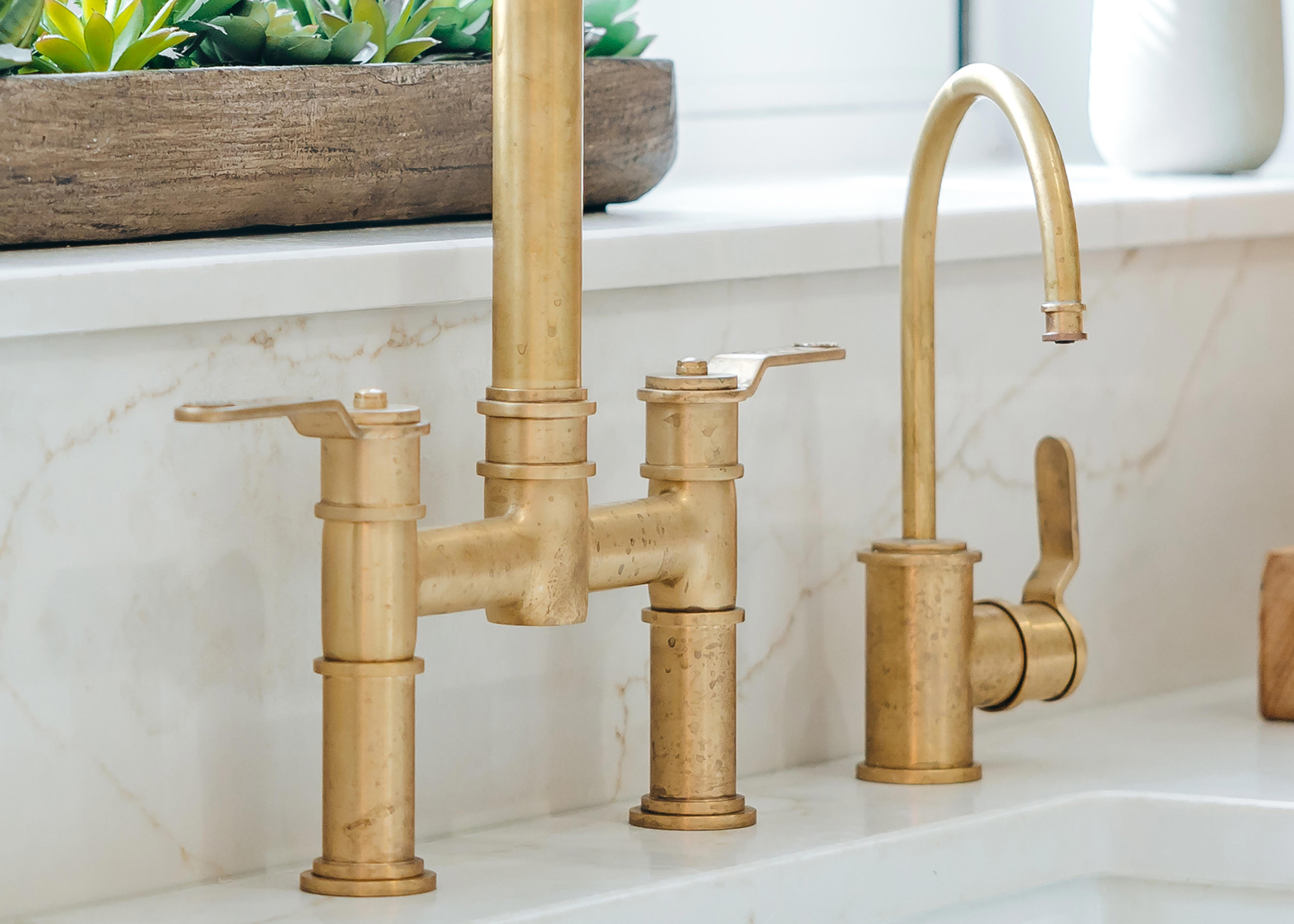 The three brass finishes we offer are raw and what we describe as ‘living’, meaning they will develop their own unique patina as they react with their environment and daily use.