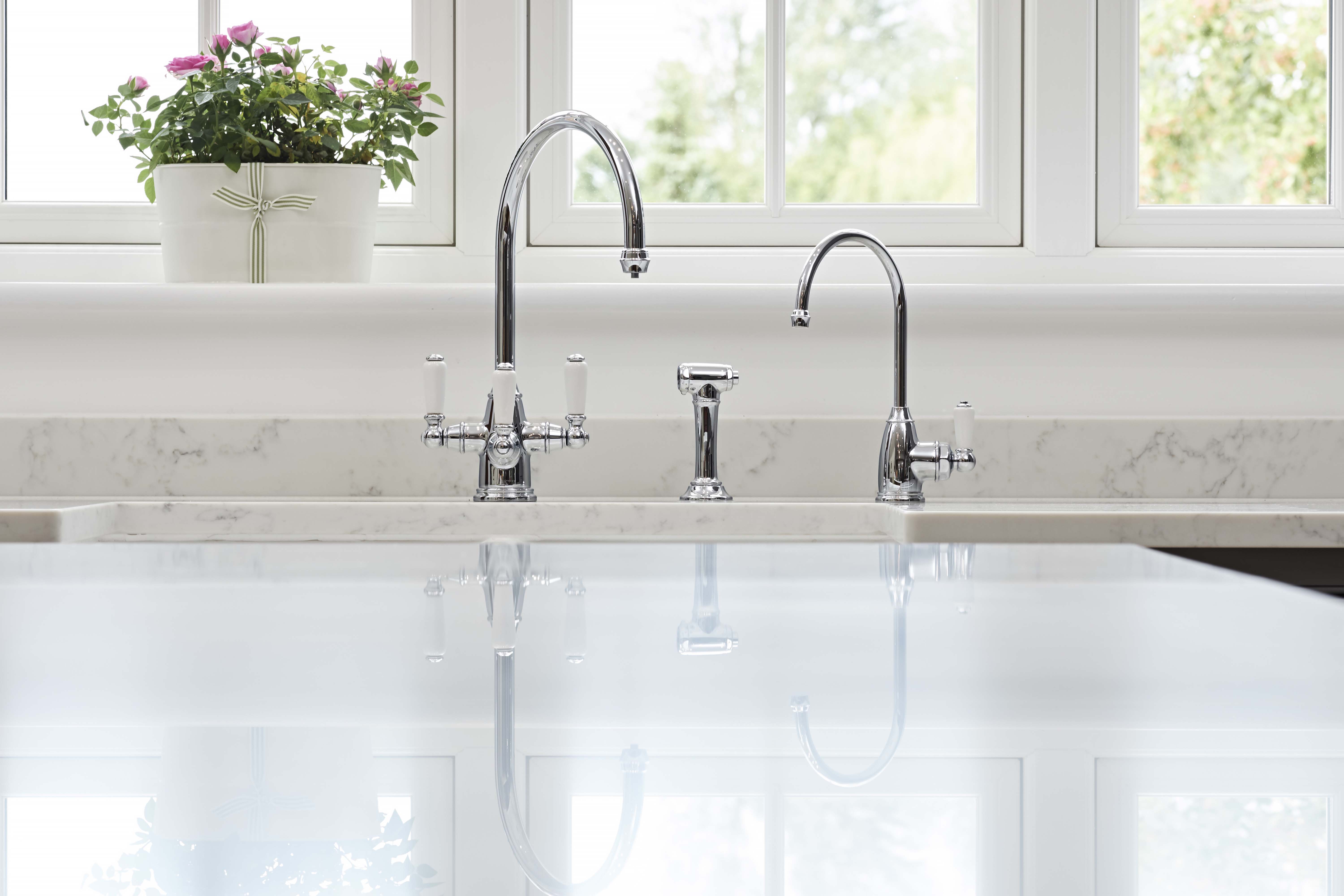 Beautifully classic in style, without compromising on technology, the Phoenician mixer with built-in filtration is offers hot and cold water as well as filtered drinking water from a separate lever. This version also comes with a deck-mounted side rinse, for rinsing the sink as well as cleaning pots and pans.