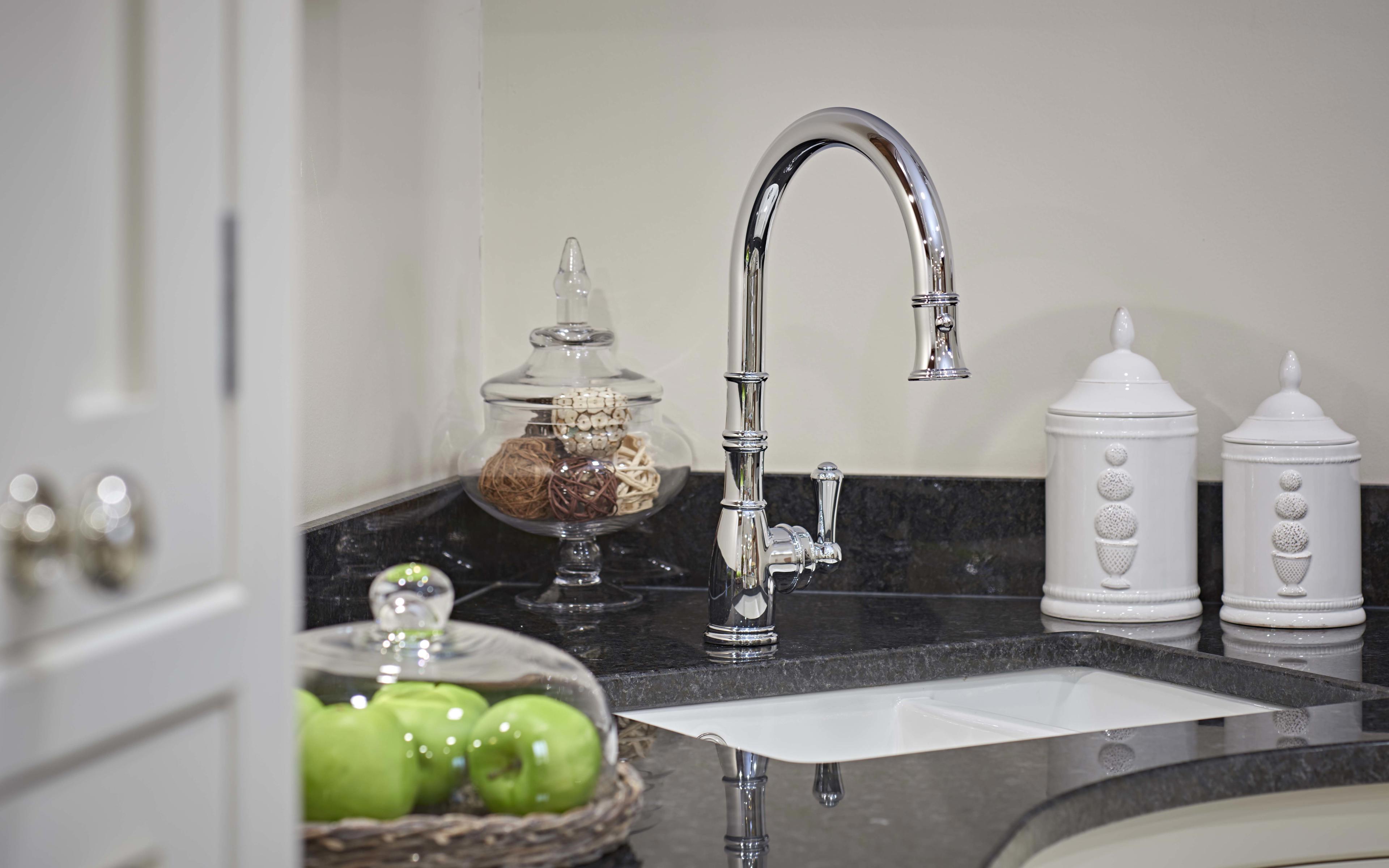 Offering an alternative to the traditional side spray rinse, the Provence monobloc kitchen mixer features a built-in retractable metal hand spray at the end of a high quality woven hose - freeing up precious worktop space, and providing a help in the kitchen when cooking, cleaning or filling large pots and pans. Part of the Provence collection, this beautiful tap has the same ornate details you'll see in the rest of the collection.