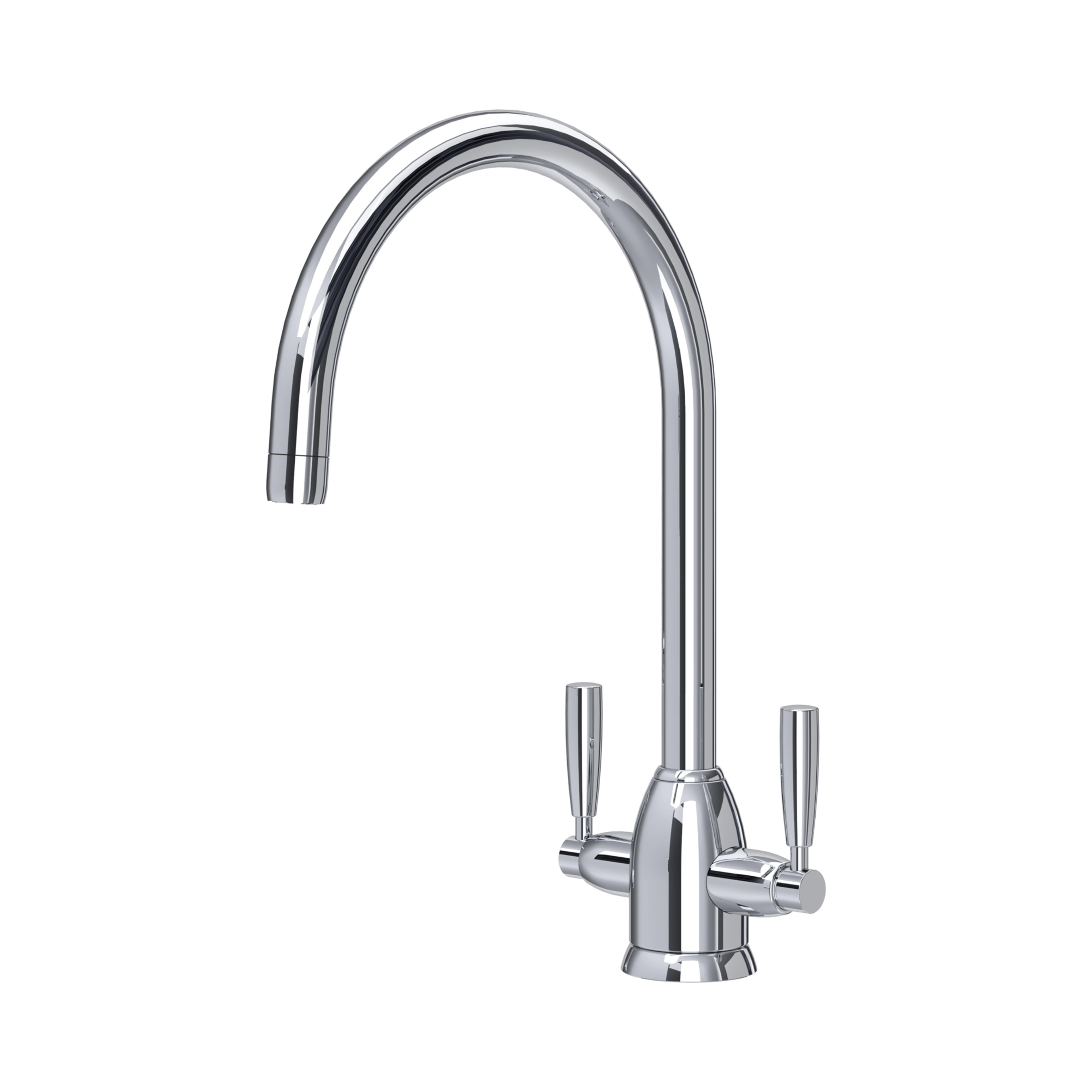 Simple, but beautifully elegant, the monobloc Langbourn mixer features a curved C-shaped spout and clean lines to complement a modern kitchen design. This version features two levers; one for hot and one for cold.